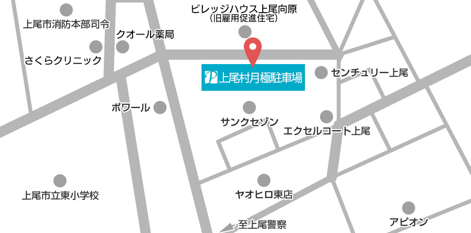 当上尾村月極駐車場はスーパーヤオヒロさんの裏に位置します。